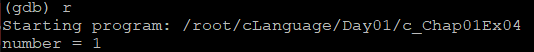 Breakpoint 1 at 0x80484be: file c_Chap01Ex04.c, line 12.
